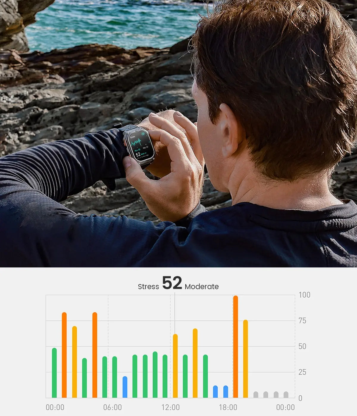 Extract the enhanced power of VP60 bio-tracking optical sensor found in KOSPET TANK M3 ULTRA, and enjoy highly accurate 24-hour monitoring of heart rate, blood oxygen, and stress levels, which aids you along your health and fitness journey.